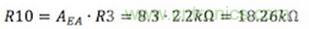 首先,将R3从3.74KΩ改变为2.2KΩ,得到想要的3.37V输出。然后由R10和R3的比值确定误差放大器增益。