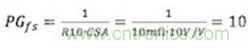 LM25116评估板的功率级跨导由10mΩ的电流检测电阻(R11)和电流检测放大器增益(10)设定,并满足10A的电流极限。最终的功率级跨导等于: