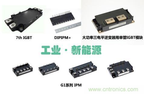 针对伺服驱动器、光伏逆变器等工业市场需求,三菱电机此次重点推介整流逆变制动一体化??镈IPIPM+,G1系列IPM,第7代IGBT以及大功率三电平逆变器用单管IGBT??樗闹植贰F窘枇己眯阅芑竦檬谐∏囗牡?代IGBT,两种封装方式兼容了现有市场主流产品封装,并采用预涂热界面材料(PC-TIM)有效降低了50%接触热阻。同样备受期待的产品,还有今年全新开发的“G1系列IPM”。它采用第7代 IGBT和FWDi芯片,配备多种额定电流对应广泛用途的工业设备,有助于通用变频器、伺服驱动器、电梯等设备降低损耗、减小体积、提高可靠性。