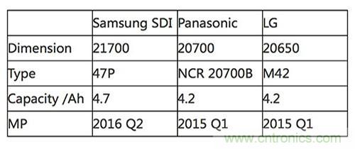 在此前后,Samsung公开开发21700,LG生产20650型号(见下表)。