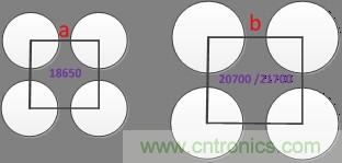 由于21700 /20700 /20650电池容量的增加在实际PACK设计中需要考虑单支电池安全失控后对周围电池的影响及问题的可控性,所以需要重新计算电池之间的“安全设计距离”,这个距离肯定要大于18650的(b 》 a),这进一步增加了体积。