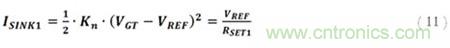 那么栅极驱动对阈值电压的差是什么呢,VGT?这最终由偏置网络第1柱的反馈决定;它本质上是维持所需ISINK1电流需要的电压: