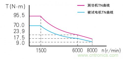而要模拟被试电机的实际运行工况,那测功机的加载能力,必须覆盖被测电机的全部工况范围,那才能满足模拟“所有工况”的要求。简单来说,就是测功机的机械负载的TN曲线,必须覆盖被试电机的TN曲线,这样才能把被试电机的全程TN特性测试出来。