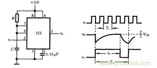 输出脉冲延迟时间tp=1.1RC 输出脉冲周期T0=NTi