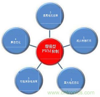我之前提到过这一优势——算法优化。利用增强型PWM抑制,不需要再复制或计算相电流,因为可直接得到现成答案。只需很少的软件就能有效地运行电机。