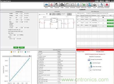 使用这个组件时,一些设计参数已输入该工具中。组件的左侧显示参数名称,中间供用户输入,右侧显示适用于该特定负载开关的数值范围。单击“Open Design”(打开设计)按钮将启动WEBENCH工具。显示结果类似于图3所示。