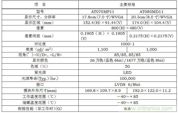 【导读】三菱电机株式会社此次推出可应用于严酷环境下工作的建筑机械、农业机械以及机床等设备显示屏的工业用彩色TFT液晶??榧峁绦韵盗行虏?。该产品抗振性能更强,可承受高达以往产品7倍左右(加速度6.8G)的振动强度,工作保证温度范围更广(-40℃~+85℃),并具备超宽视角(水平/垂直各170°)。7.0寸及8.0寸WVGA样品自3月31日起陆续开始提供。