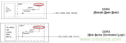 驱动DRAM工业发展的一个主要市场需求是对内存器件的低功耗要求。介于这个原因,DDR4引入了一个新的IO驱动标准,成为PSOD(Pseudo Open Drain)。在PSOD里,接收端将信号端接到轨电压(VDD),而不是轨电压的一半(VDD/2)。
