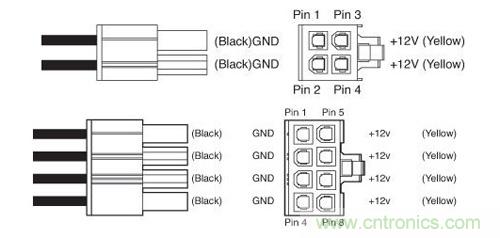 显卡外接供电,有6pin和8pin两种,提供+12V供电