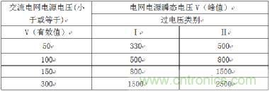 1、根据交流电网电压有效值和过电压类别确认交流电网电源瞬态电压(由附录Z和表2J确定);