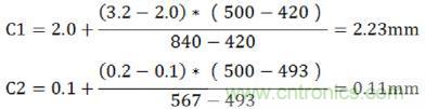 即最小电气间隙的基本绝缘为C1+C2=2.34mm(由于峰值电压500V大于输入电压峰值),加强绝缘为4.68mm;