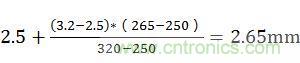 爬电距离计算:按照污染等级2、材料类别Ⅲ可知265V有效值电压在表2N的250V和320V之间,而250V时基本绝缘为2.5mm,320V的基本绝缘为3.2mm,即265V电压基本绝缘为