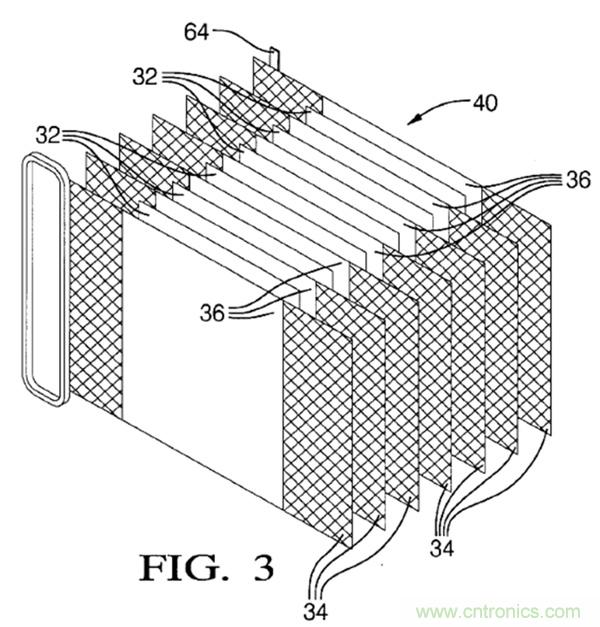 下图Fig3是双极性电极的堆叠stack,可以称之为电堆40。其中,32是隔膜;34是集流体;36是双极性电极,两侧分别是正负极活性物质?;窘峁褂肷厦娴氖纠且谎?。