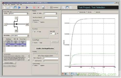 对这类应用,非常重要的一点是要有一整套测试功能,包括脉冲、DC和C-V。采用器件专用词汇的软件(而不是仪器专用词汇)可以帮助简化测量。这些软件还可以简化多台源测量单元(SMU)仪器之间的交互,用户可以把重点放在被测器件上,而不是测量仪器上。