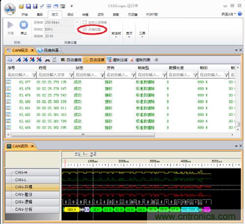 我们勾选上总线应答,再次开始实验(此时总线中相当于有3个节点)。这时如图8所示,总线数据收发正常。