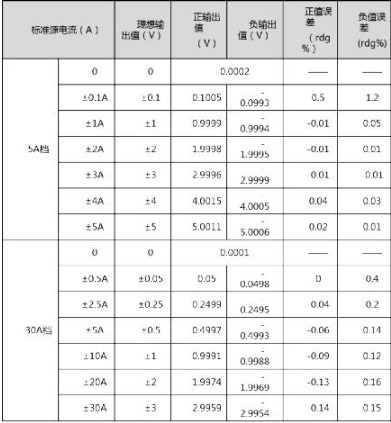 ZCP0030-50标称直流精度为1%rdg±1mV,实测精度如表1所示。