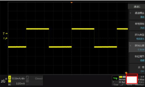 方波响应主要是用来简易测试电流探头幅频响应特性的测试方法。电流探头能够完整的重现方波波形,不出现畸变,说明探头的幅频响应平坦,是良好的。