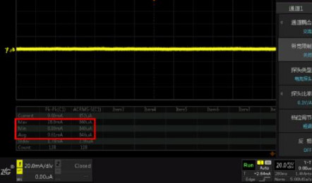 如图6所示,测试出来的电流探头的实际噪声的峰峰值小于10mA,交流有效值小于1mArms。