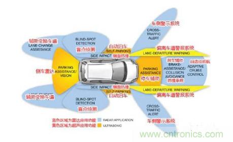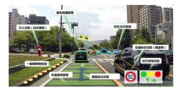 ADAS(高级辅助驾驶系统),是指利用安装于车上各式各样的传感器,在第一时间收集车内的环境数据,进行静、动态物体的辨识、侦测与追踪等技术上的处理,从而能够让驾驶者在最快的时间察觉可能发生的危险。通常包括导航与实时交通系统TMC,电子警察系统ISA 、自适应巡航ACC 、车道偏移报警系统LDWS、车道保持系统,碰撞避免或预碰撞系统、夜视系统、自适应灯光控制、行人?;は低?、自动泊车系统、交通标志识别、盲点探测,驾驶员疲劳探测、下坡控制系统和电动汽车报警系统等。