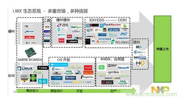 除了S32V系列,被收购的飞思卡尔有一款著名的i.MX系列芯片也可以作为中央处理器。i.MX特别是i.MX6在汽车上,特别是车载信息系统上有大量的应用。众多的汽车厂商使用i.MX。