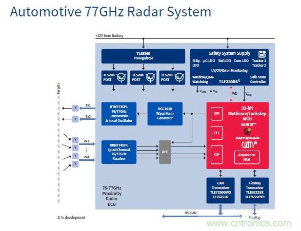 作为汽车电子、功率半导体以及智能卡芯片的全球市场领袖,英飞凌一直以来为汽车等工业应用提供半导体和系统解决方案。英飞凌在24/77/79G雷达、激光雷达等传感器器件及处理芯片方面都具有领先的技术。除此之外,在车身控制、安全气囊、EPS、TPMS等等各方面都有自己的解决方案。