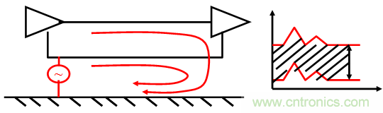 3. 器件上的电路走线与大地之间有电位差,这样电路走线上会产生共模干扰电流。