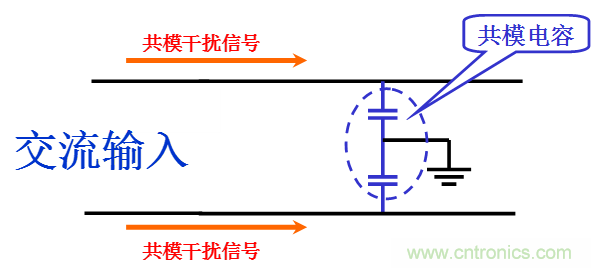 在电路中引入共模电容,则共模电容提供最短的路径使共模干扰信号被旁路,从而抑制共模干扰的产生 。