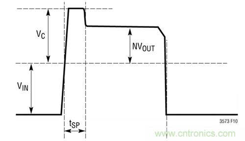 LT3748 通过检测变压器主端上的输出电压免除了增设一个光耦合器、基准电压和光学驱动器的需要。如图2 所示,输出电压可在功率晶体管关断期间的主端开关节点波形上准确地测量,其中的 N 为变压器的匝数比,VIN 为输入电压,而 VC 为最大箝位电压。LT3748 通过选择 RFB 和 RREF 以及变压器的匝数比来设定输出电压。由于始终在二极管电流零交叉点上进行反射输出电压的采样,因此负载调节性能在边界模式操作中得到了大幅度的改善。LT3748 通??商峁?±3% 的负载调节。