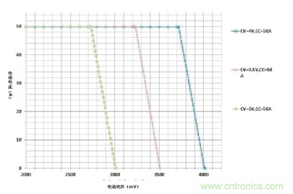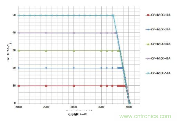 图4显示了在不同电流条件下,具有相同电压设置的转换曲线。在不同的条件下,图4中的转换点是不同的,因为功率传输路径上的电压降会随着电流设置的增加而增加。图5显示了在不同电压条件下,具有相同电流设置的转换曲线。这两条曲线显示了从CC到CV的平滑过渡,表明控制系统是稳定的。
