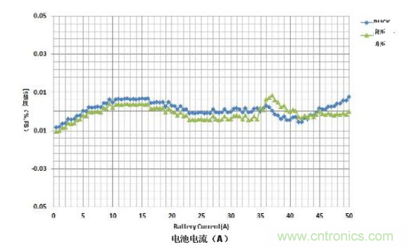 许多因素都会影响系统精度,包括温度漂移、电压漂移和偏移电压。电池测试仪参考设计使用三点校准来计算不同的影响来源或任何错误。图2显示了在宽电流范围内实现的满量程精度。该系统在电池充电时以降压模式运行,放电时以升压模式运行。