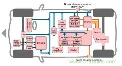 图1展示了这些系统以及需要在EV中控制或通信的许多其他子系统。