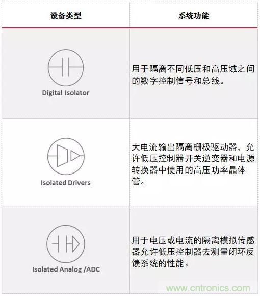 表1中所示的隔离元器件经常用于EV系统中的通信和控制。