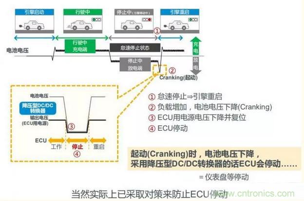 现在市面采用的都是降压型DC/DC转换器,在车子启动时,电池电压的下降会使得车载电子控制单元(Electronic Control Unit, 以下简称“ECU”)停动。要想使ECU稳定工作,就需要升降压转换器。