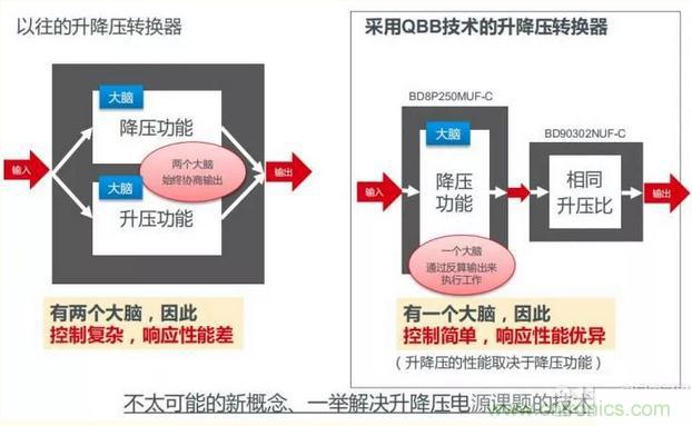 对此罗姆推出了新概念电源电路技术“Quick Buck Booster(QBB)*)”来解决升降压型DC/DC转换器的缺点问题。