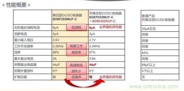特点1:实现升降压电源业界最优异的低消耗电流和响应性能