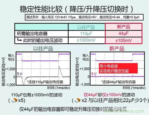 但是与降压型转换器相比,以往的升降压型转换器控制复杂且响应性能较差,输出需要大容量电容器。升降压转换器的缺点已是长期存在的问题。