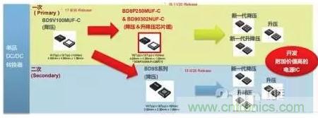 因此,从降压电源变身为升降压电源仅需增加1枚升压专用IC即可轻松实现,与升降压电源和降压电源分别设计的情况相比,开发周期可缩减50%。