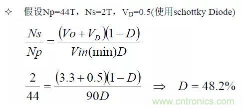 由以下公式可决定Duty cycle ,Duty cycle的设计一般以50%为基准,Duty cycle若超过50%易导致振荡的发生。