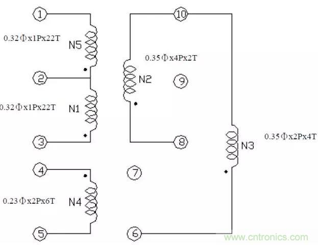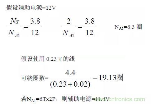 依据变压器的圈比关系,可决定辅助电源的圈数及电压。