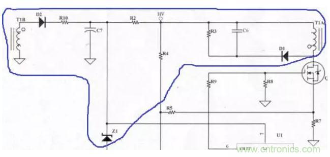 主要用于调整PWM IC的VCC电压,以目前使用的3843而言,设计时VCC必须大于8.4V(Min. Load时),但为考虑输出短路的情况,VCC电压不可设计的太高,以免当输出短路时不保护(或输入瓦数过大)。