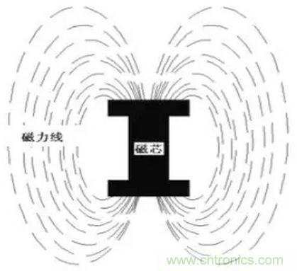 正如上所指,对于一个开环磁路的电感(以工字电感为例),其磁力线的主磁路是空气。如图1。