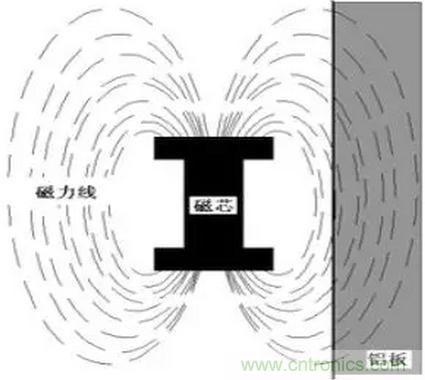 当在一个工字电感旁边放置铝板时。如图2所示,由于铝板属于逆磁性材料,其磁阻很大。相当加铝板时,原先的磁通面积减小。