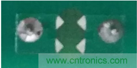 另一种办法是在PCB设计时,在共模电感两端加入放电齿,使得电感通过两放电尖端放电,避免通过其他路径放电,从而使得对周围和后级器件的影响减到最小。如图3是ZLG致远电子型号为PA1HBxOD-10W的电力电源模块PCB在共模电感处加入的放电齿的实物图。
