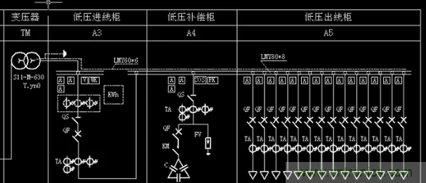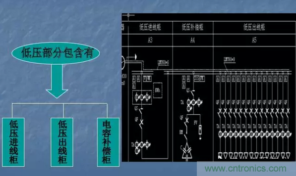 1.低压进线柜;2.低压出线; 3.低压补偿柜