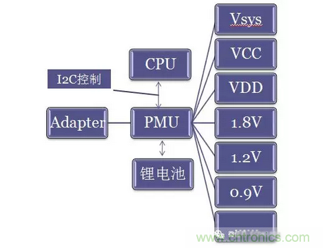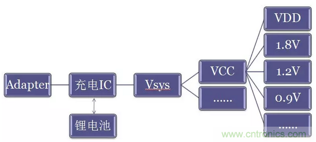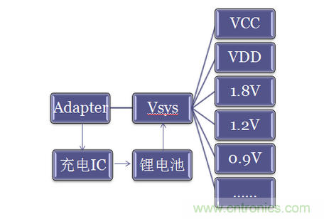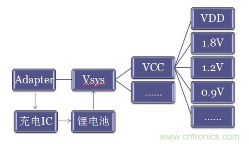 下图为一般电源管理系统,原始分立电源管理系统,模型一:
