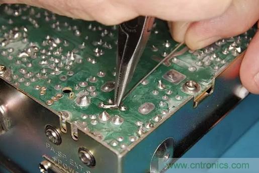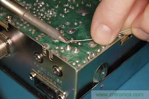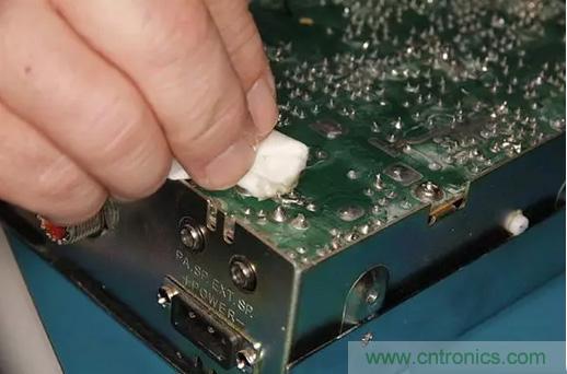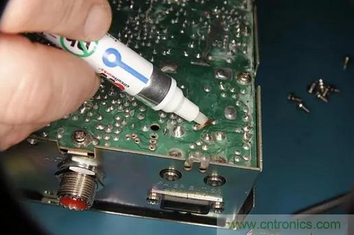接下来修剪多余的电线至焊点处,并用助焊剂清洁剂对焊点进行清理。