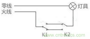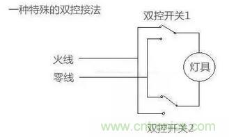 双控开关有很多种接线方式,如果电工采用了下面这种接线方法,就会关灯后发微光。