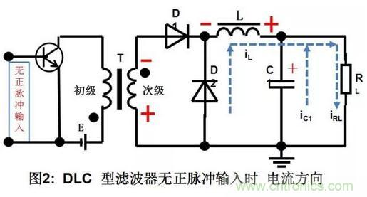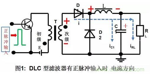 a.输入正脉冲时,先给C1充电,充电电流为ic1,迅速充到脉冲的峰值电压Vi,同时电感器L中也有线性增长的电流,并在L中储存了磁能,随着电流的增长,储存的磁能越来越多,电容器C2通过电感L也充上了电压,充电电流为ic2,C2和C1上的电压基本相等,负载RL中的电流IRL也是由输入脉冲供给。