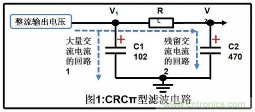 a.经整流输出的电压,首先经过C1电容器的滤波,将大部分交流成分滤除,经C1后的电压,再加到由RL和C2够成的RC滤波电路中,电容C2进一步对交流成分进行滤波。