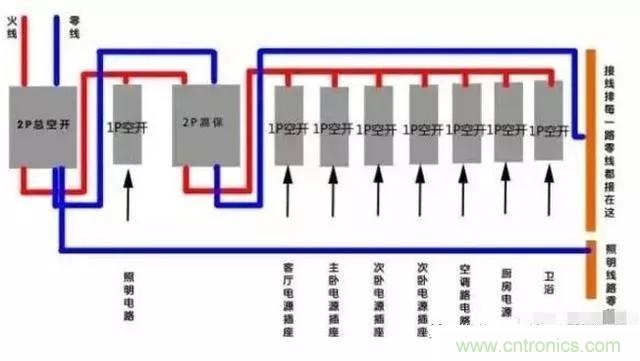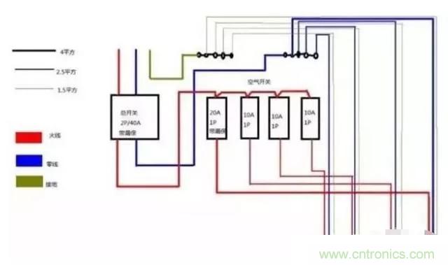 PS:需要注意你进户线,若空开选定20A以上的,线径要保持4平以上。